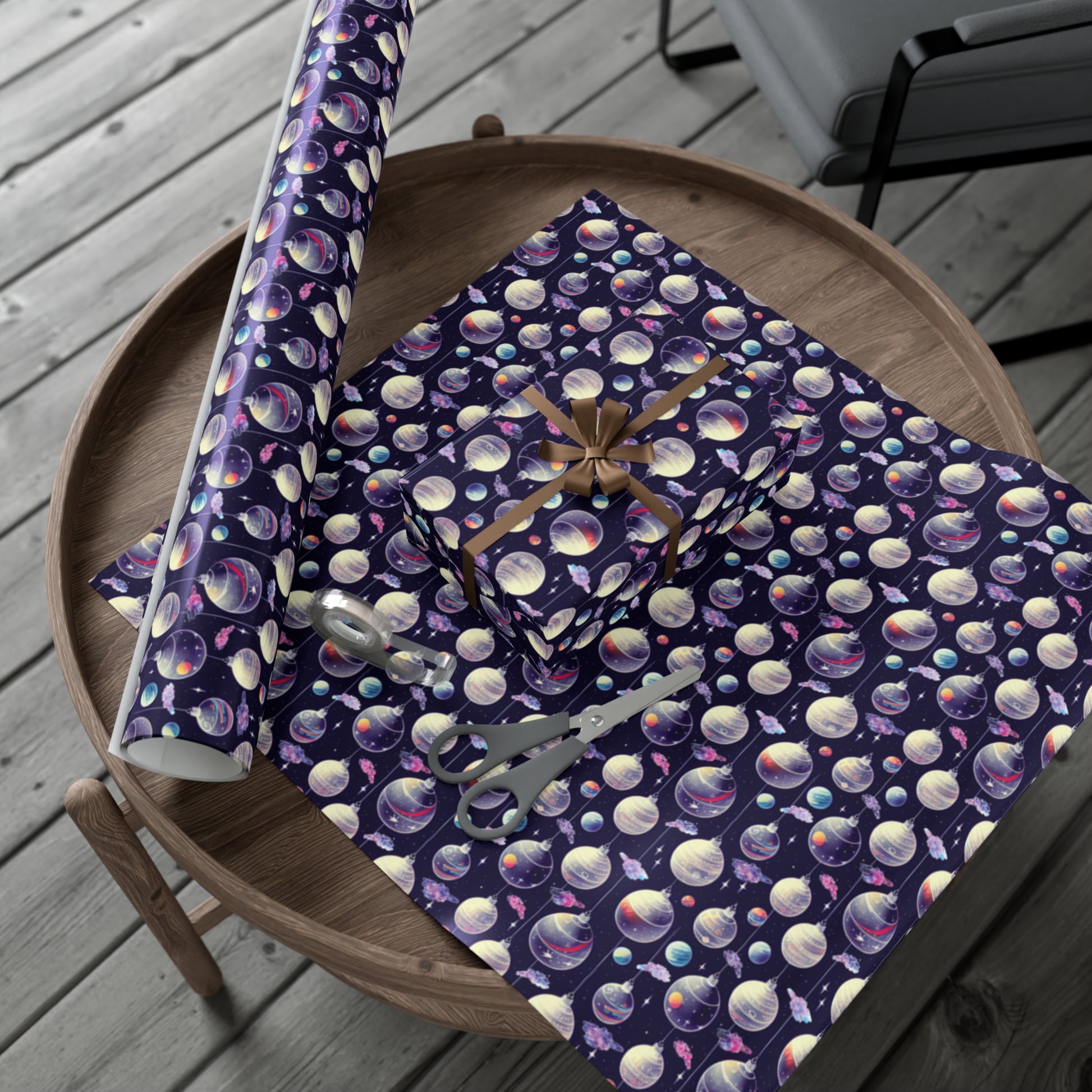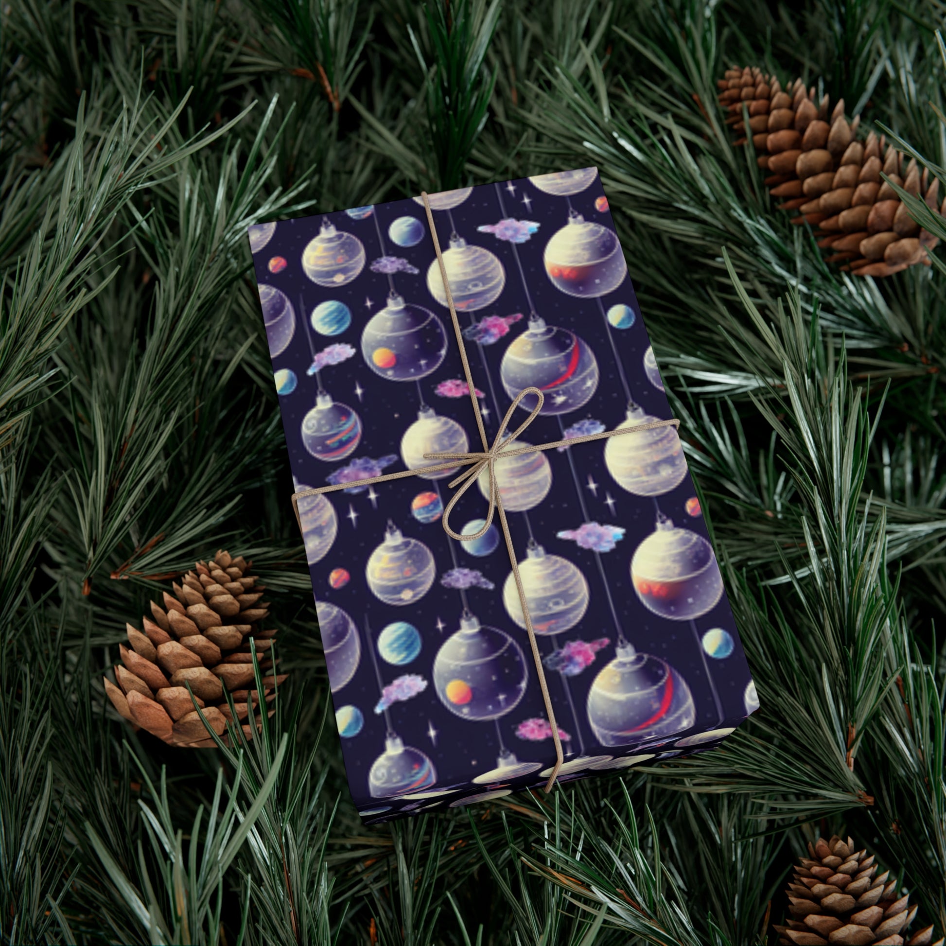 Give your holiday presents a uniquely geeky flair with Black Ocean Christmas Ornaments gift-wrap. This wrapping paper features edge-to-edge printing on a premium satin paper for a smooth and clean look.